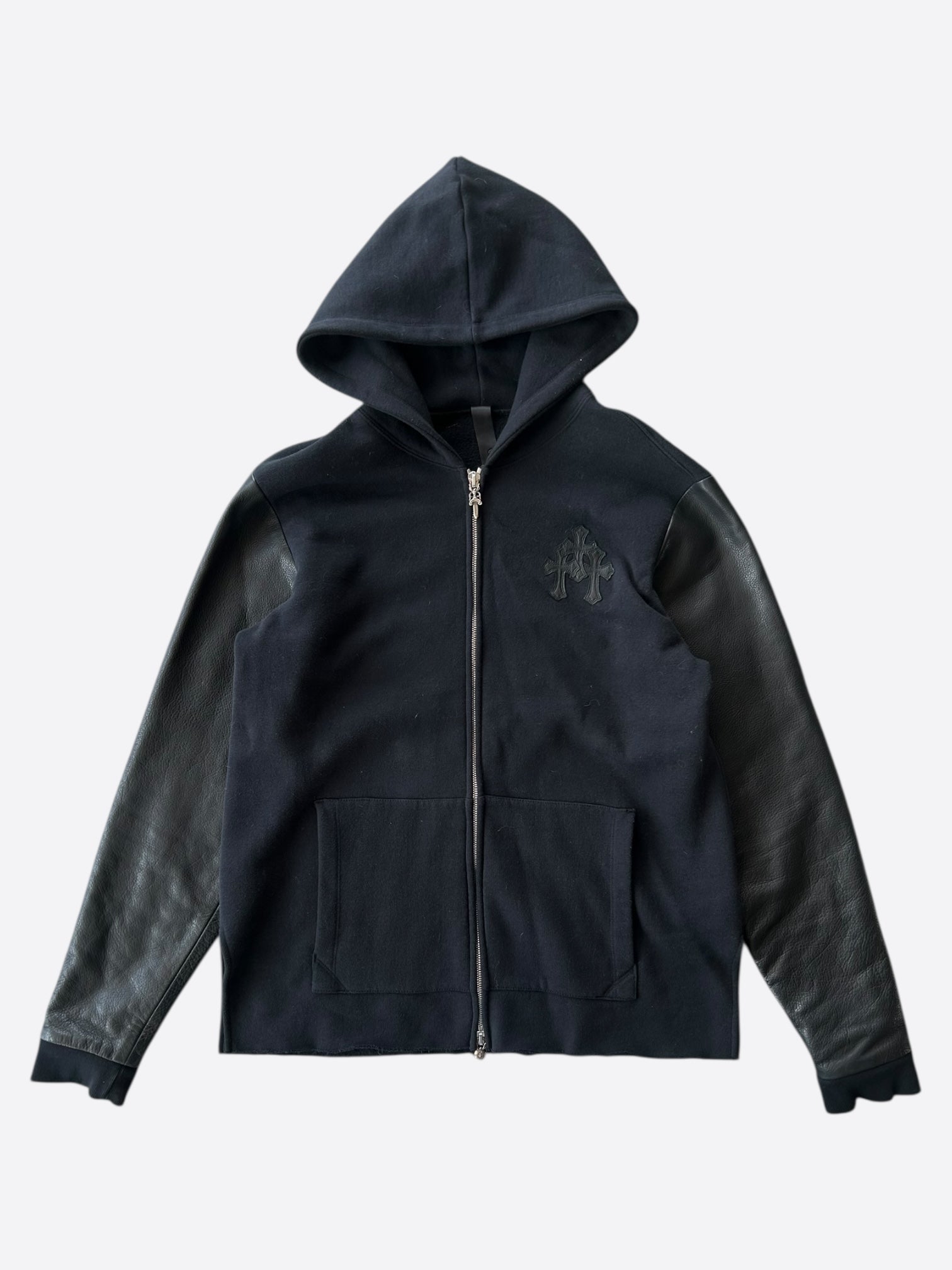 Chrome Hearts Black Leather Triple Cross Patch Hoodie