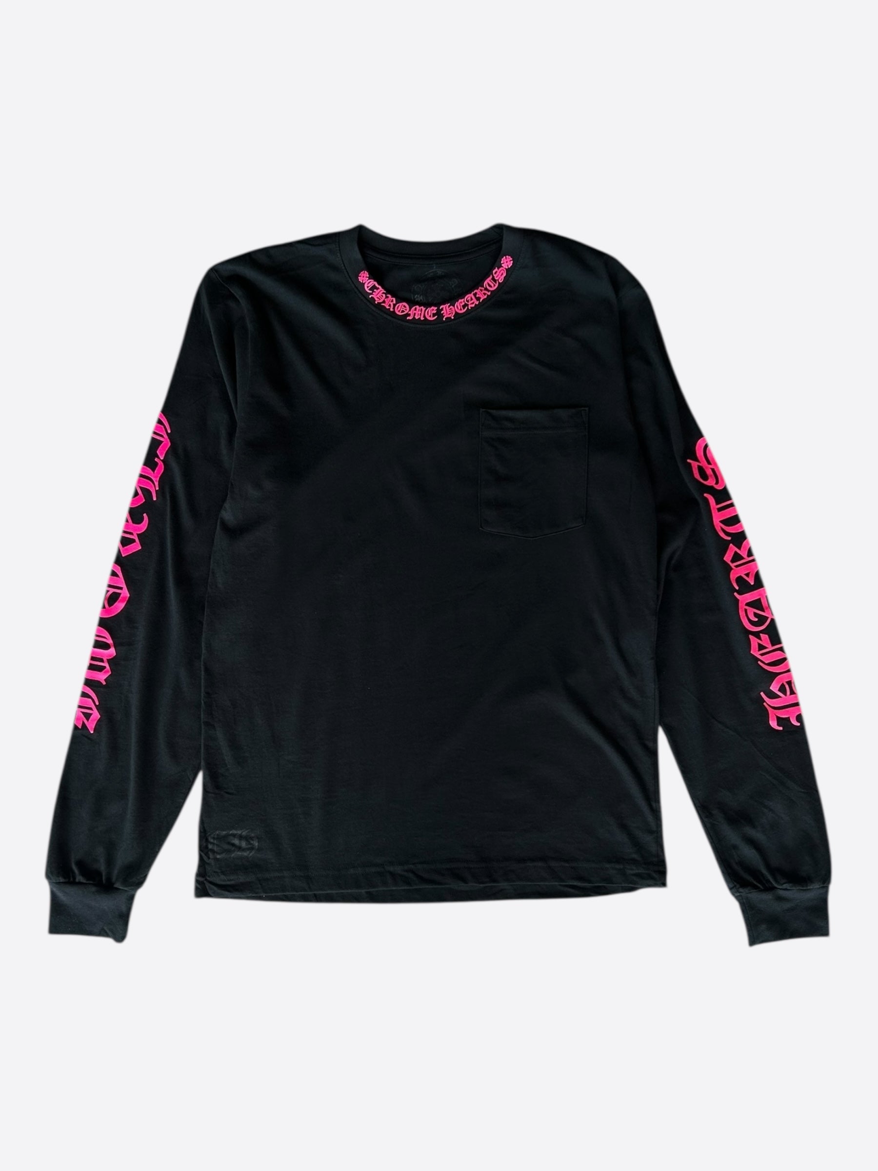 Chrome Hearts Black & Pink Neck Logo Longsleeve T-Shirt