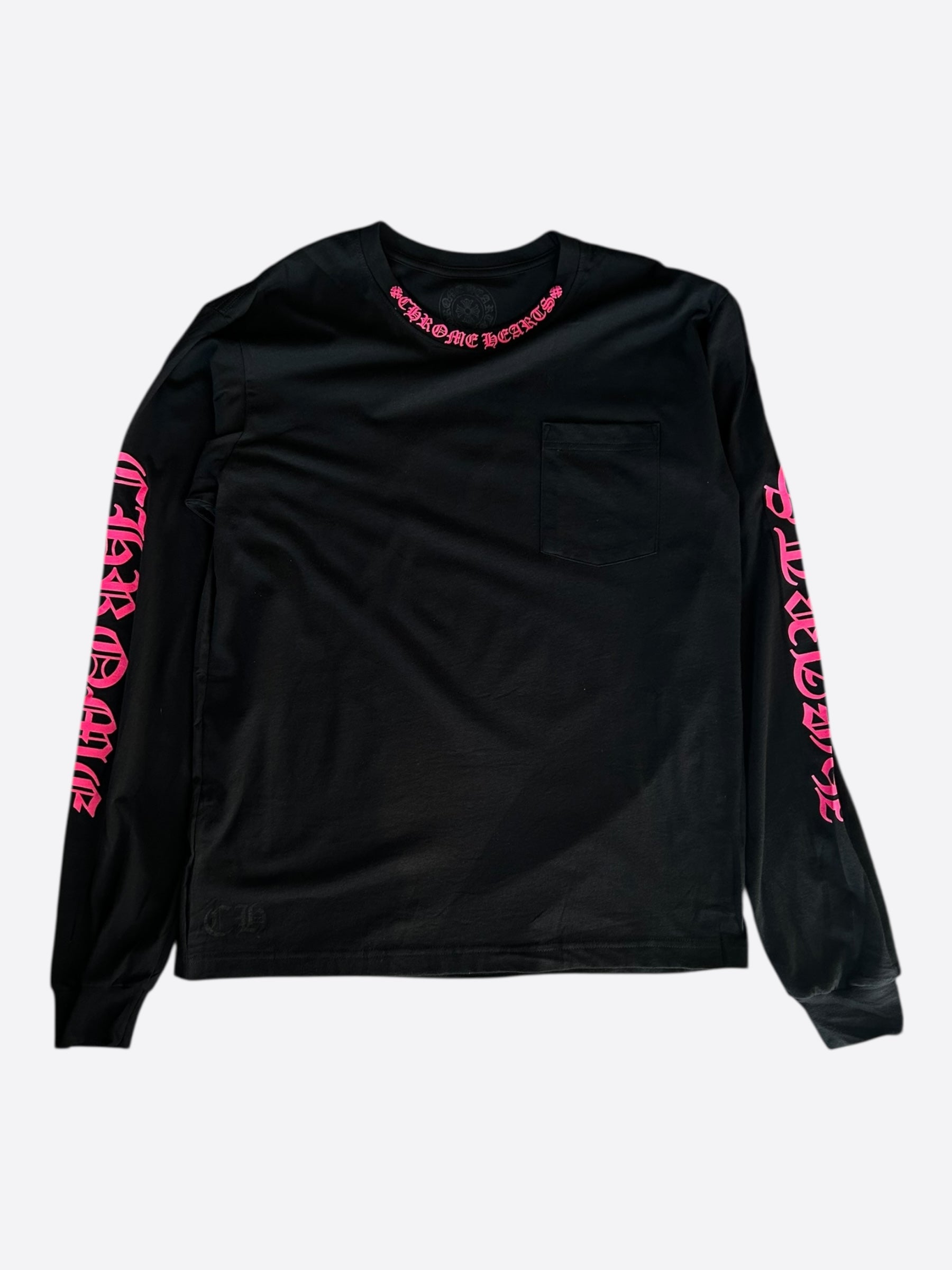 Chrome Hearts Black & Pink Neck Logo Longsleeve T-Shirt