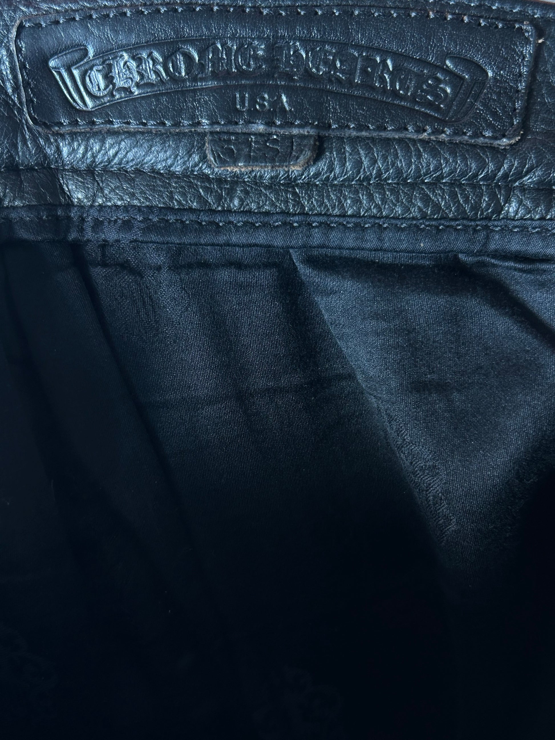 Black leather Chrome Hearts cross patches throughout