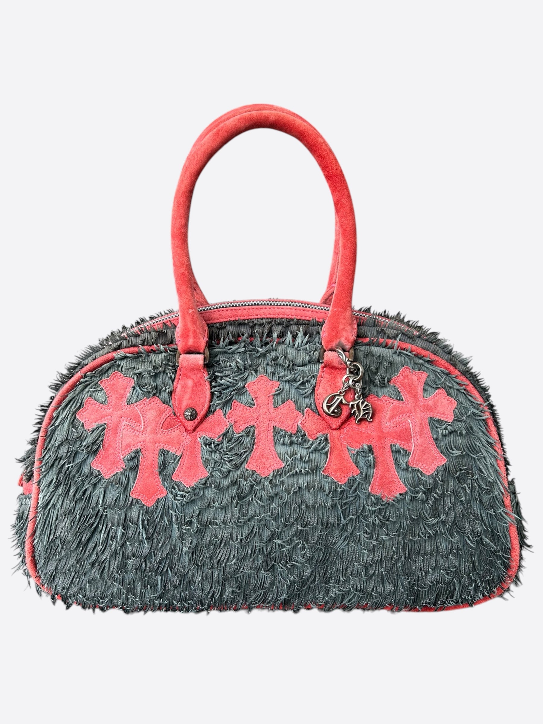 Chrome Hearts Grey & Red Cross Patch Bowling Bag