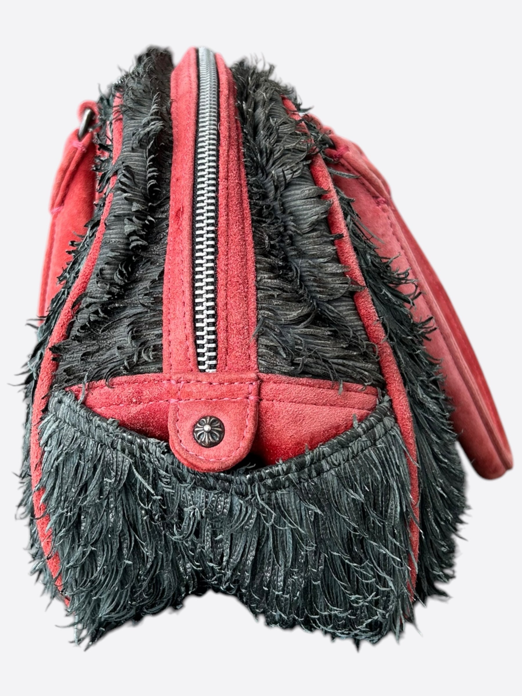 Red suede Chrome Hearts cross patches & trimming