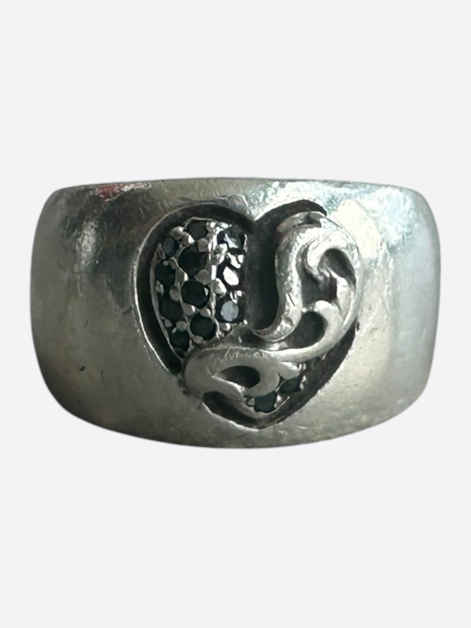 Chrome Hearts Silver & Black Diamond Heart Ring