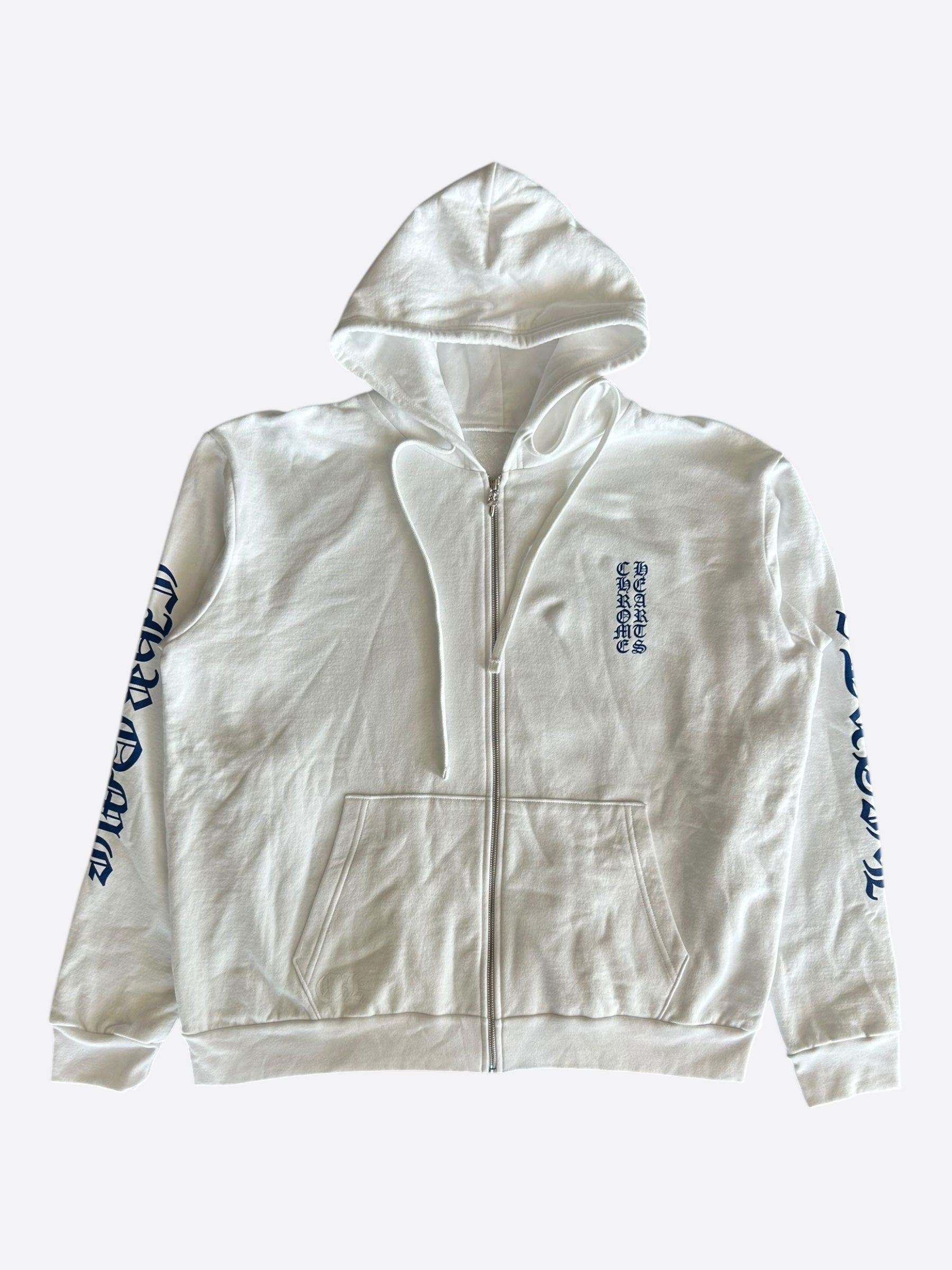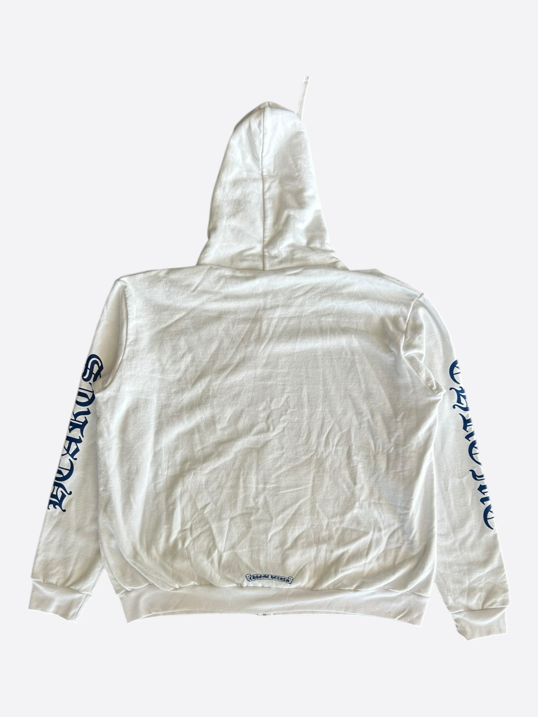 Chrome Hearts White & Blue Script Logo Zip Up Hoodie