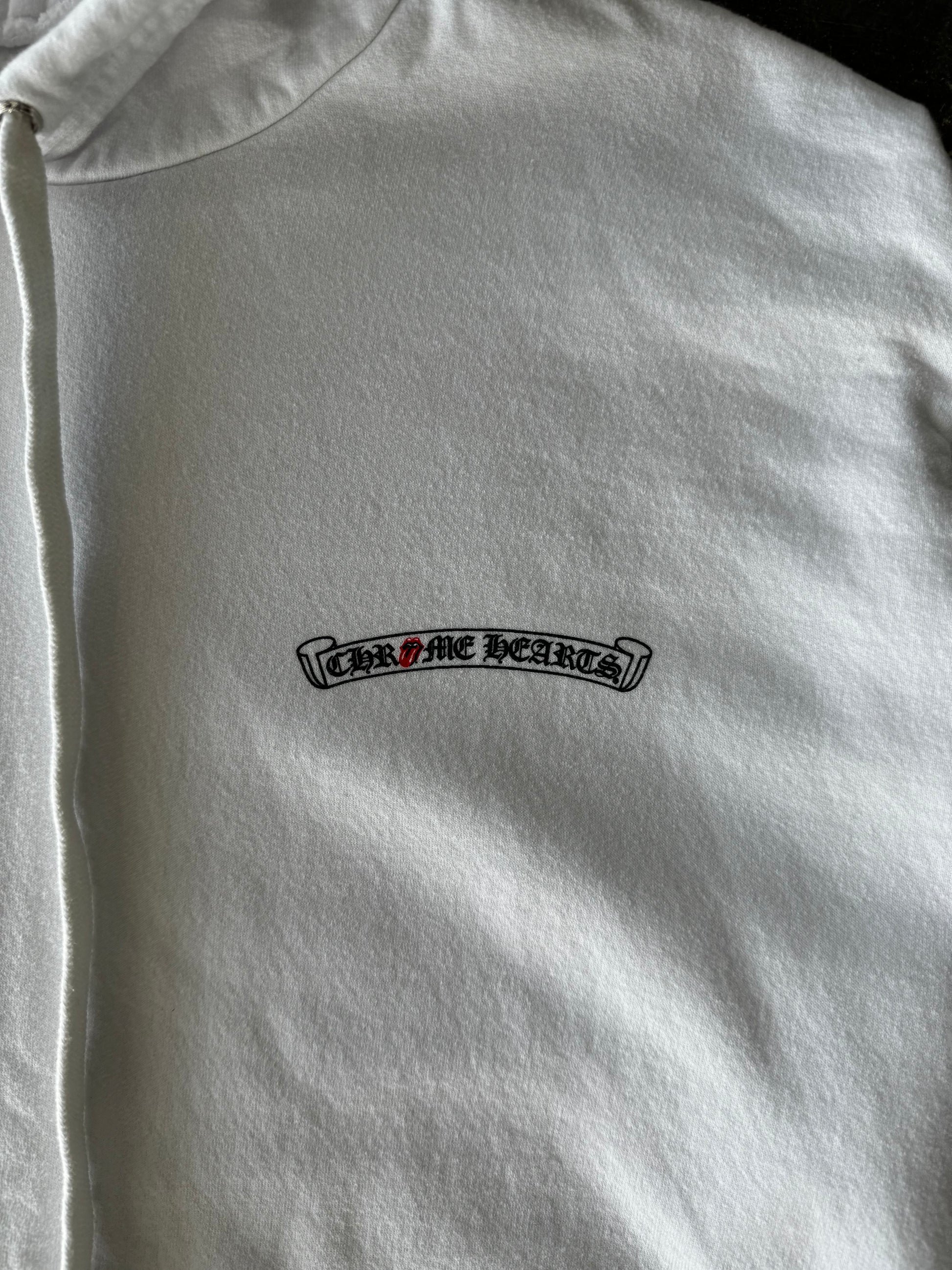 Chrome Hearts White & Red Rolling Stones Scroll Logo Hoodie