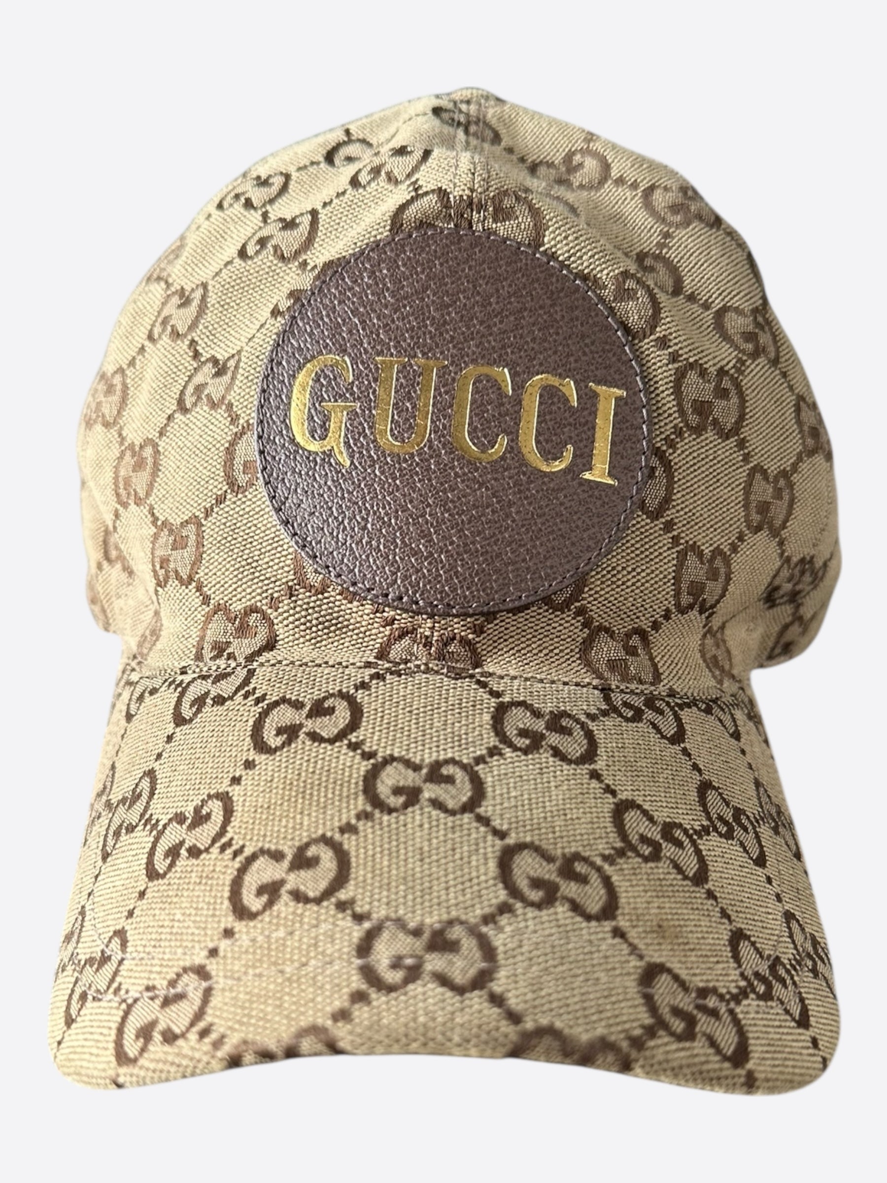 Gucci Brown GG Monogram Leather Patch Hat