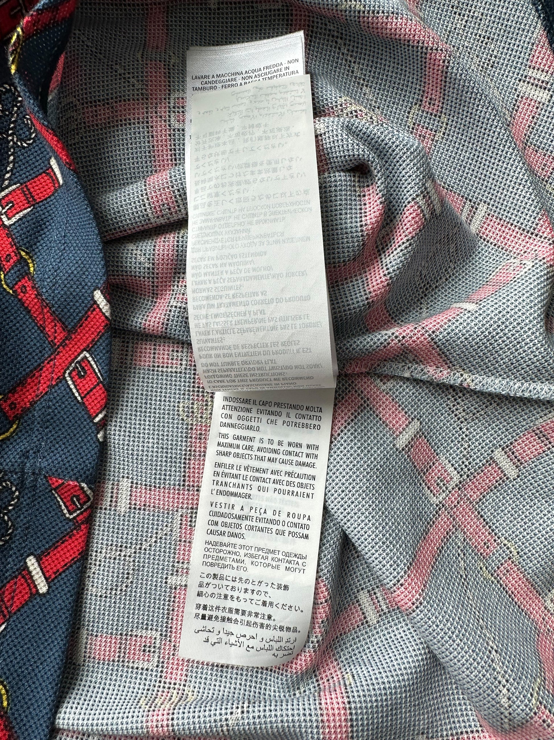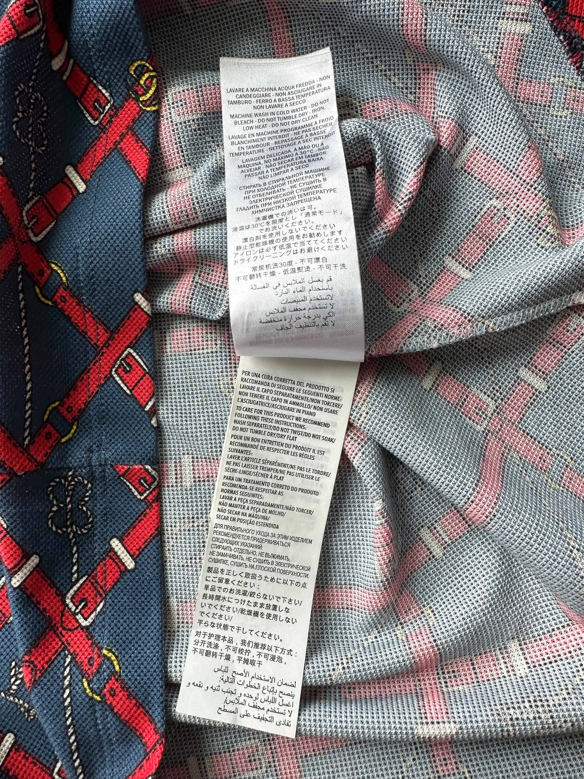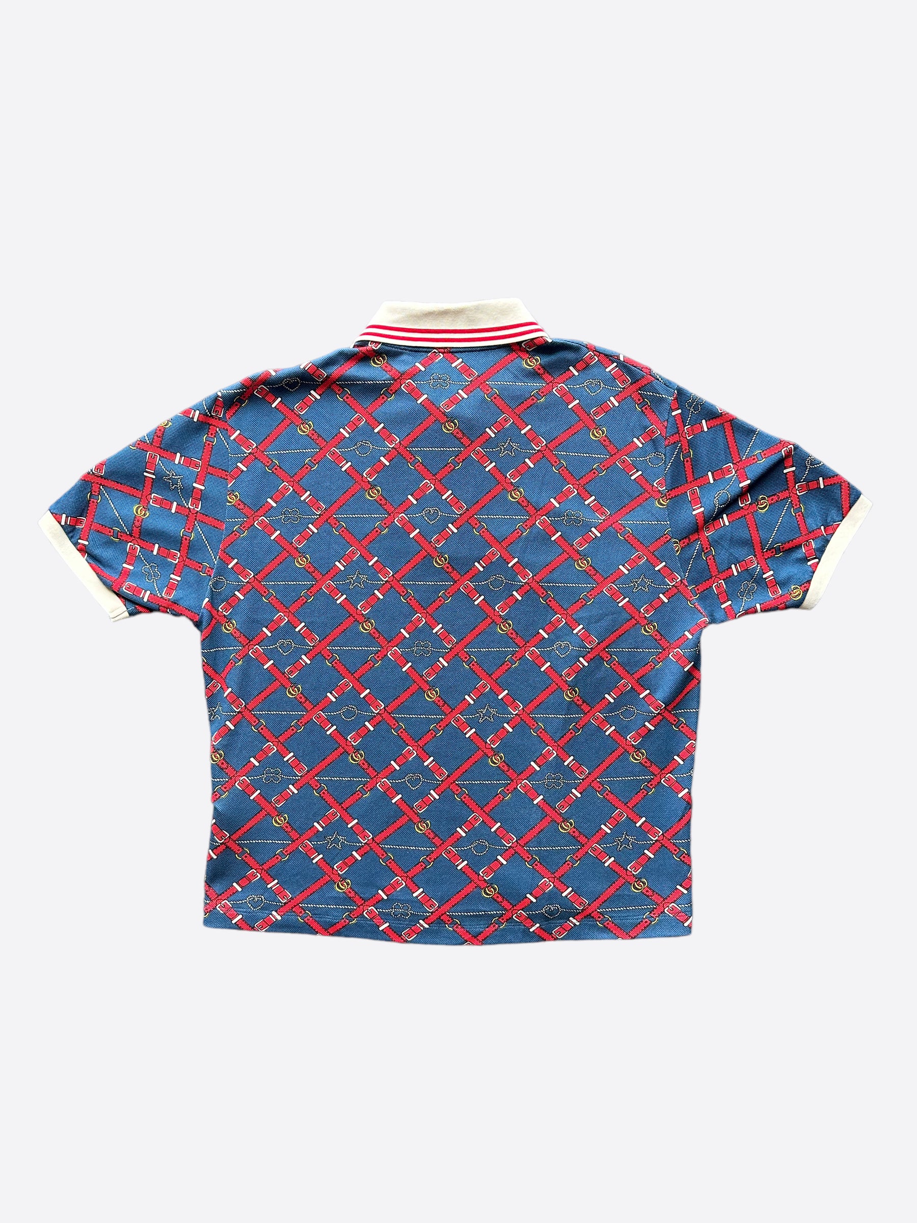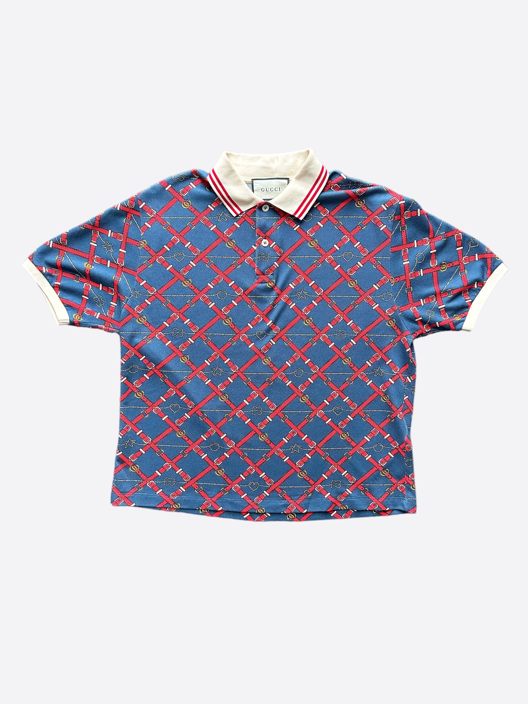 Red Gucci belts throughout shirt
