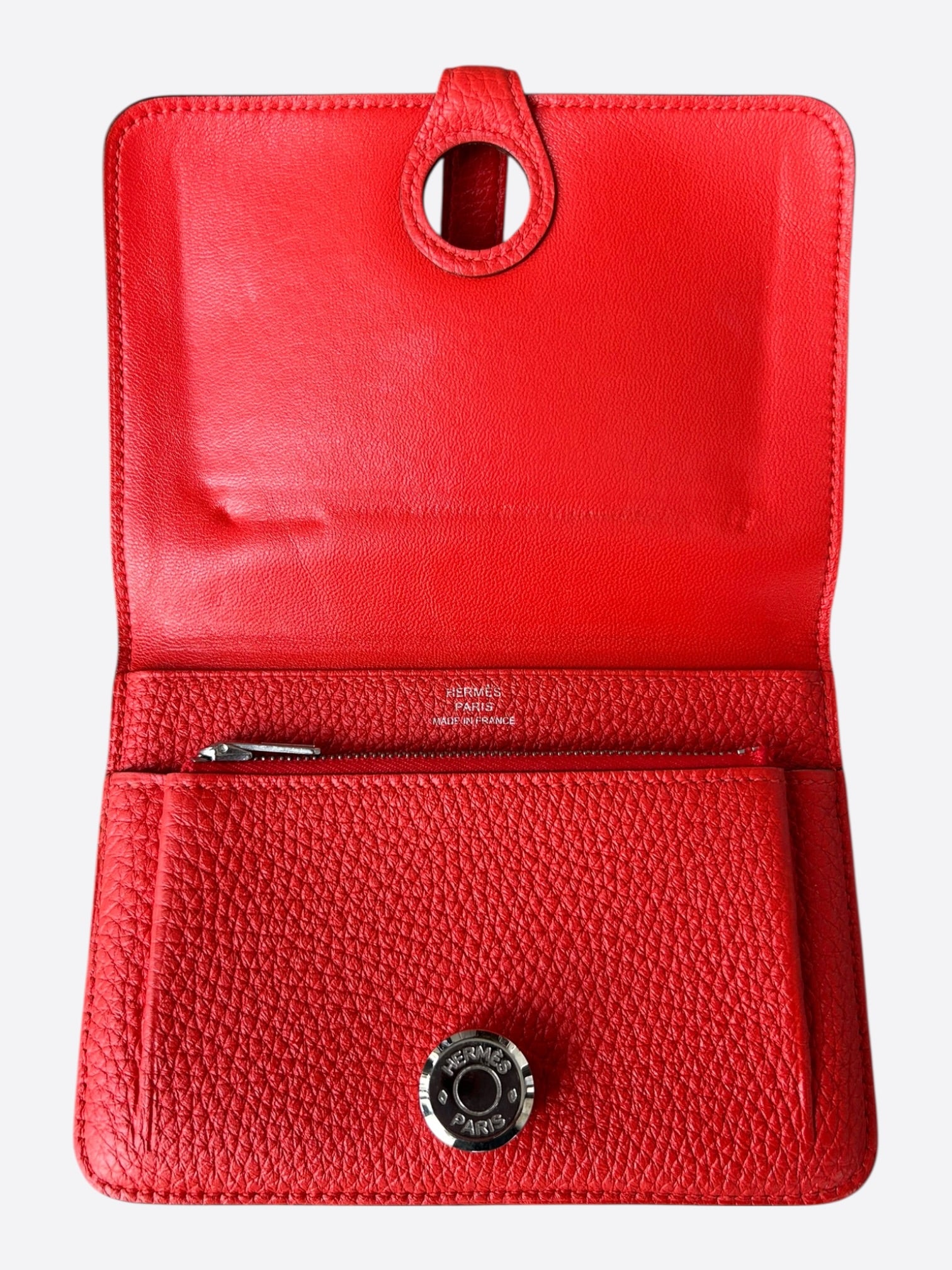 Hermes Red Togo & Palladium Hardware Compact Dogon Wallet