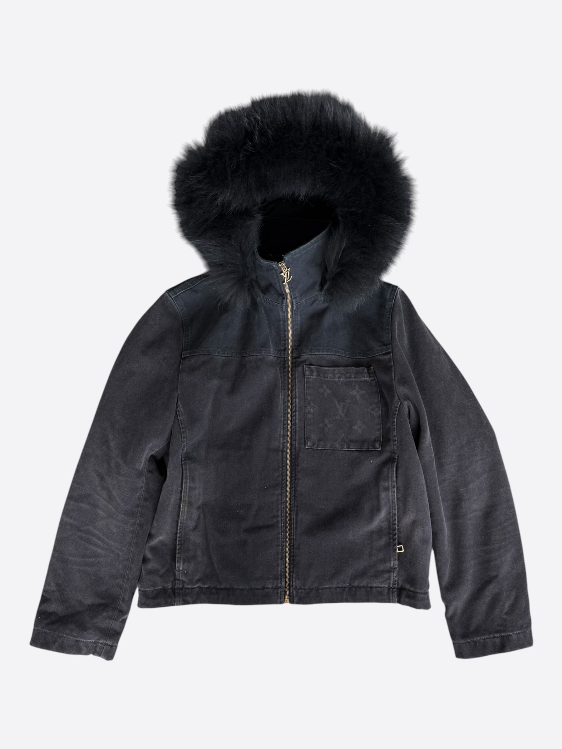 Louis Vuitton Black Monogram Fur Hooded Jacket