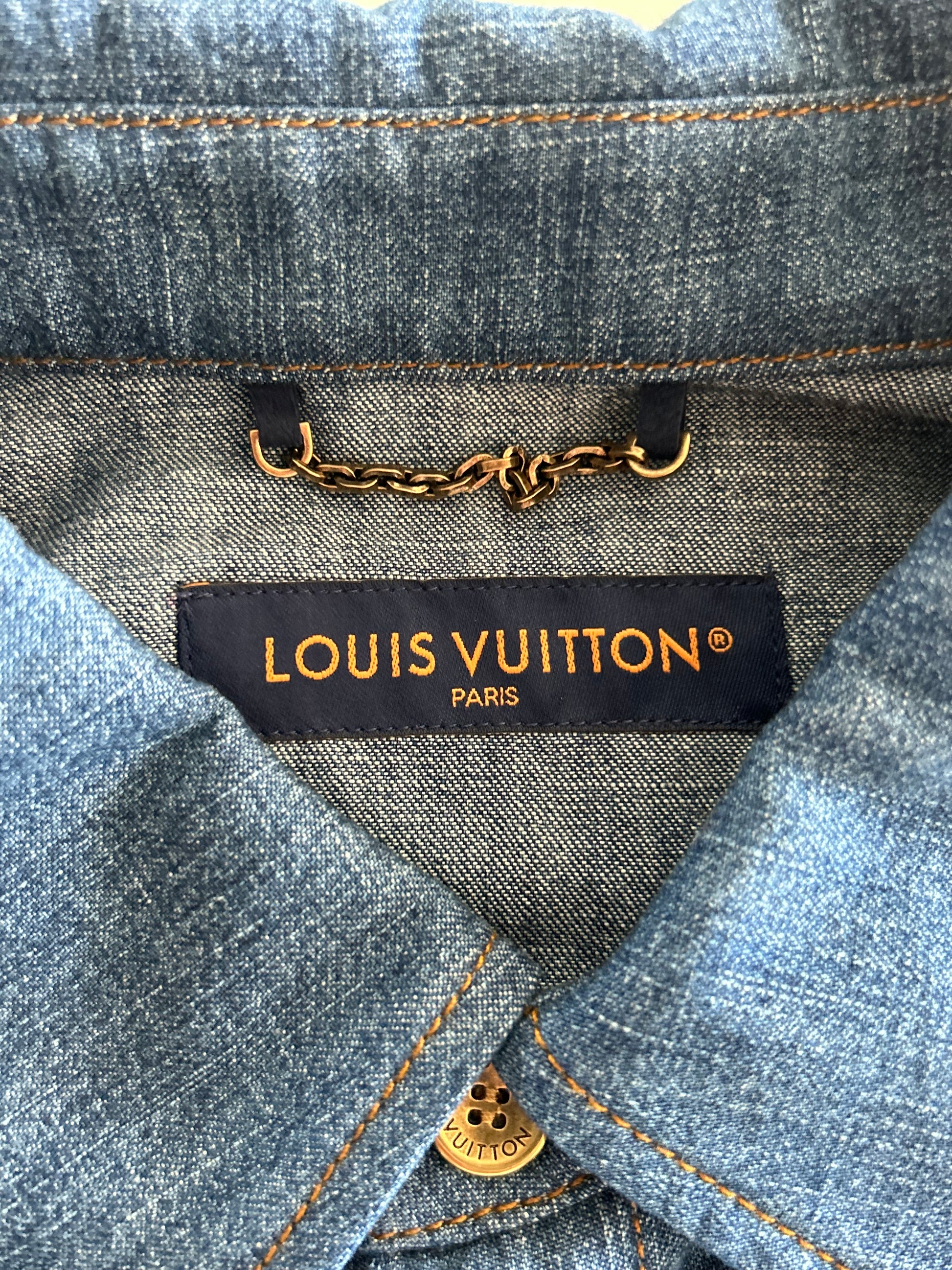 Louis Vuitton Blue & Gold Embroidered Denim Shirt