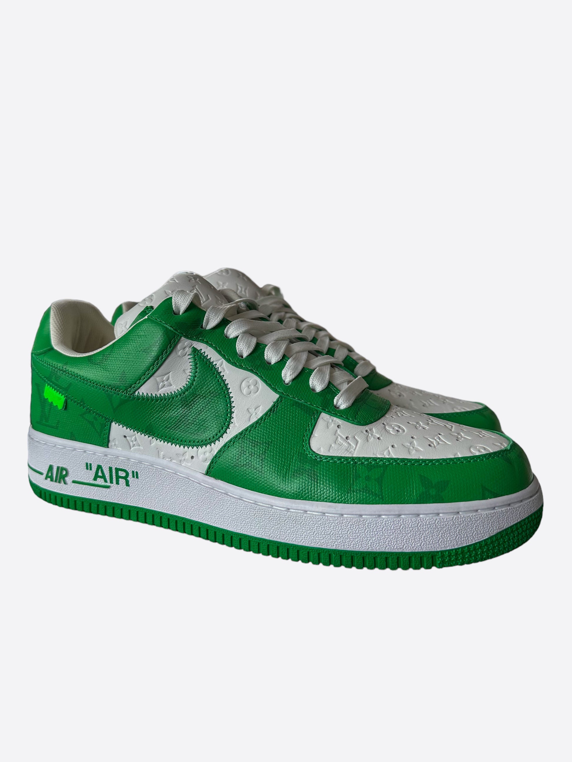 Louis Vuitton Green & White Air Force 1 Monogram Sneakers