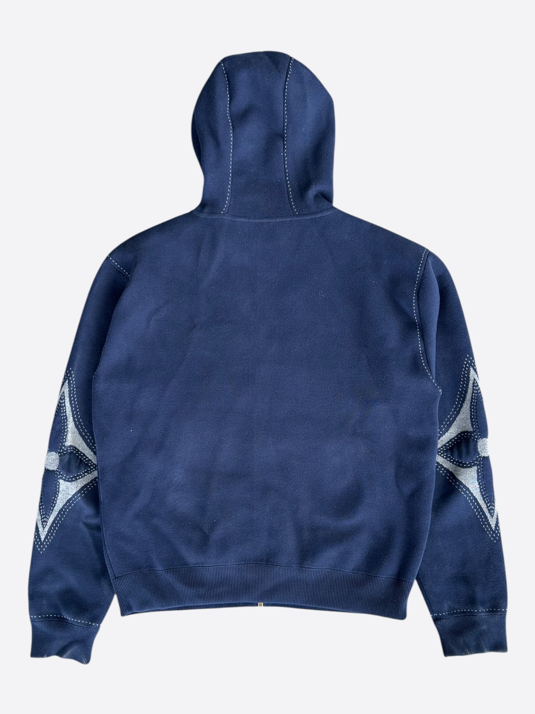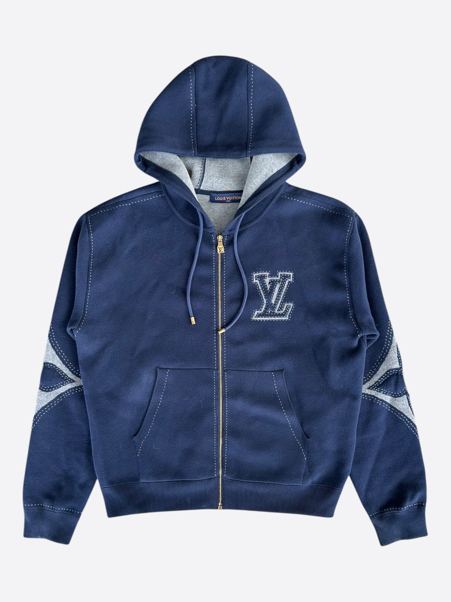Louis Vuitton Navy & White Embroidered Logo Zip Up Hoodie
