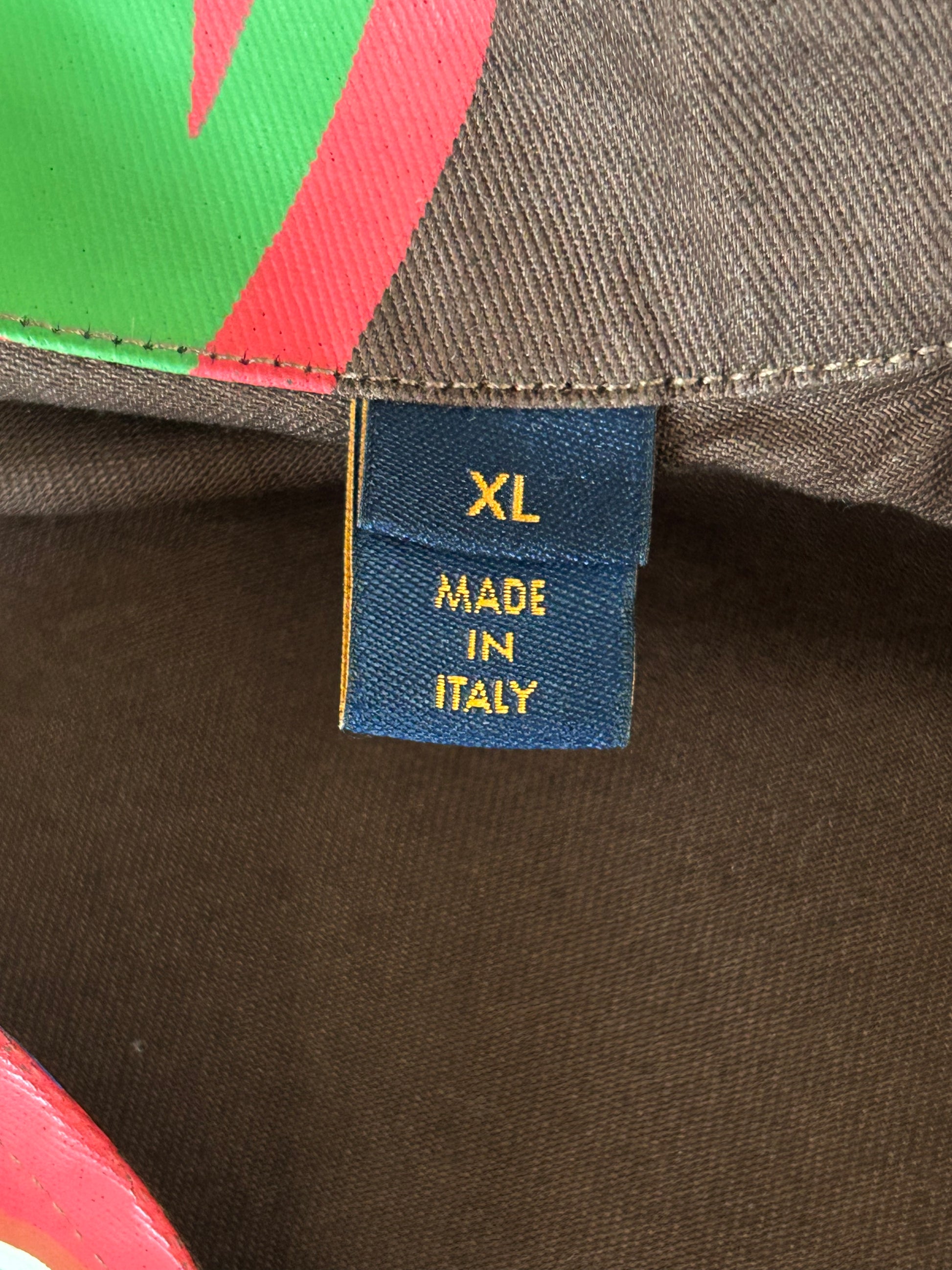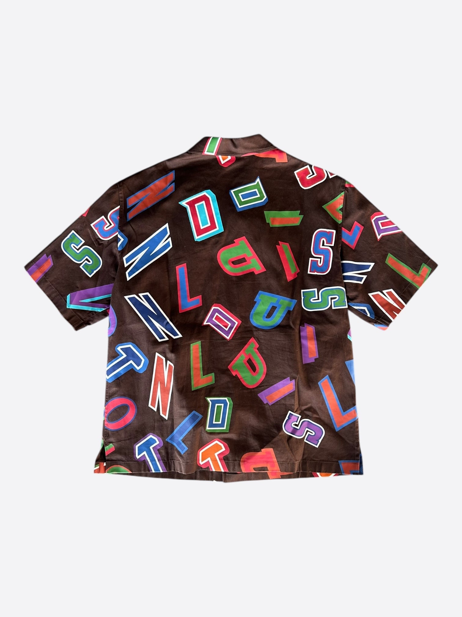Multicolor Louis Vuitton letters scattered throughout shirt