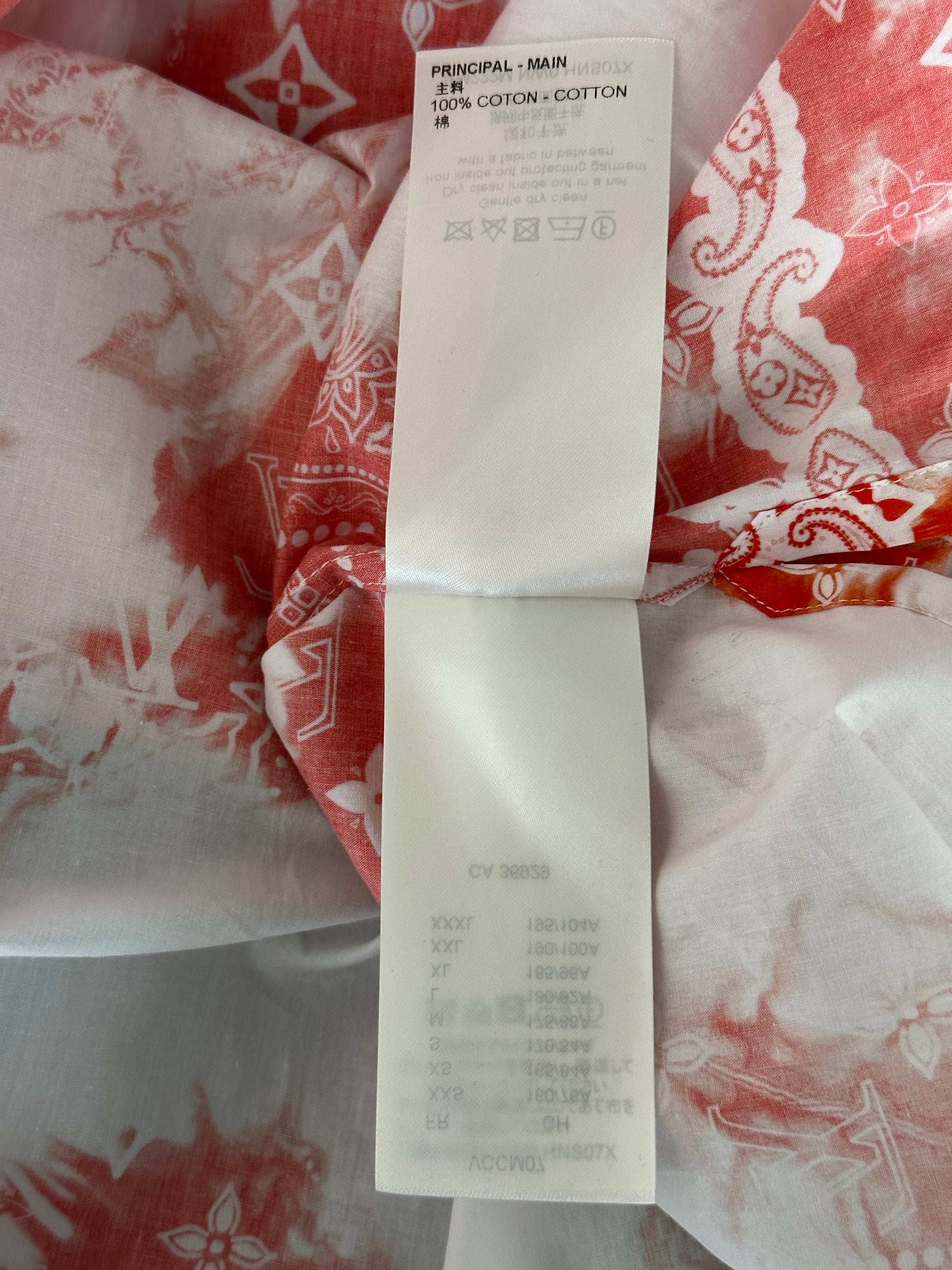 Louis Vuitton Red Bandana Bleached Short Sleeve Button Up Shirt