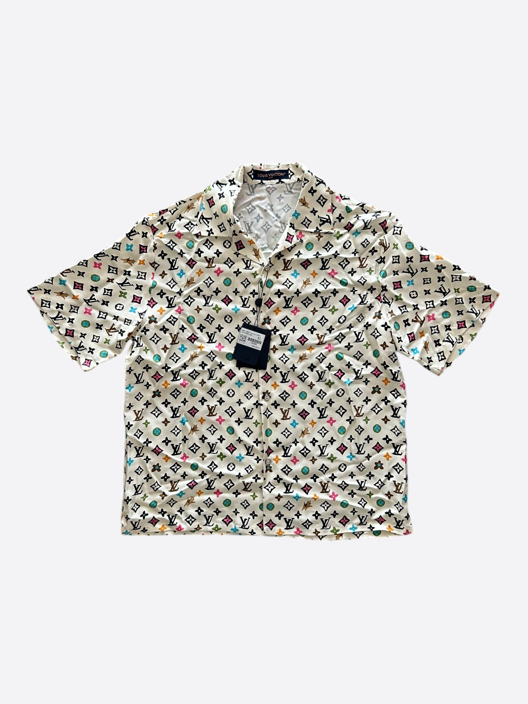 Louis Vuitton Tyler Cream Multicolor Monogram Silk Button Up Shirt