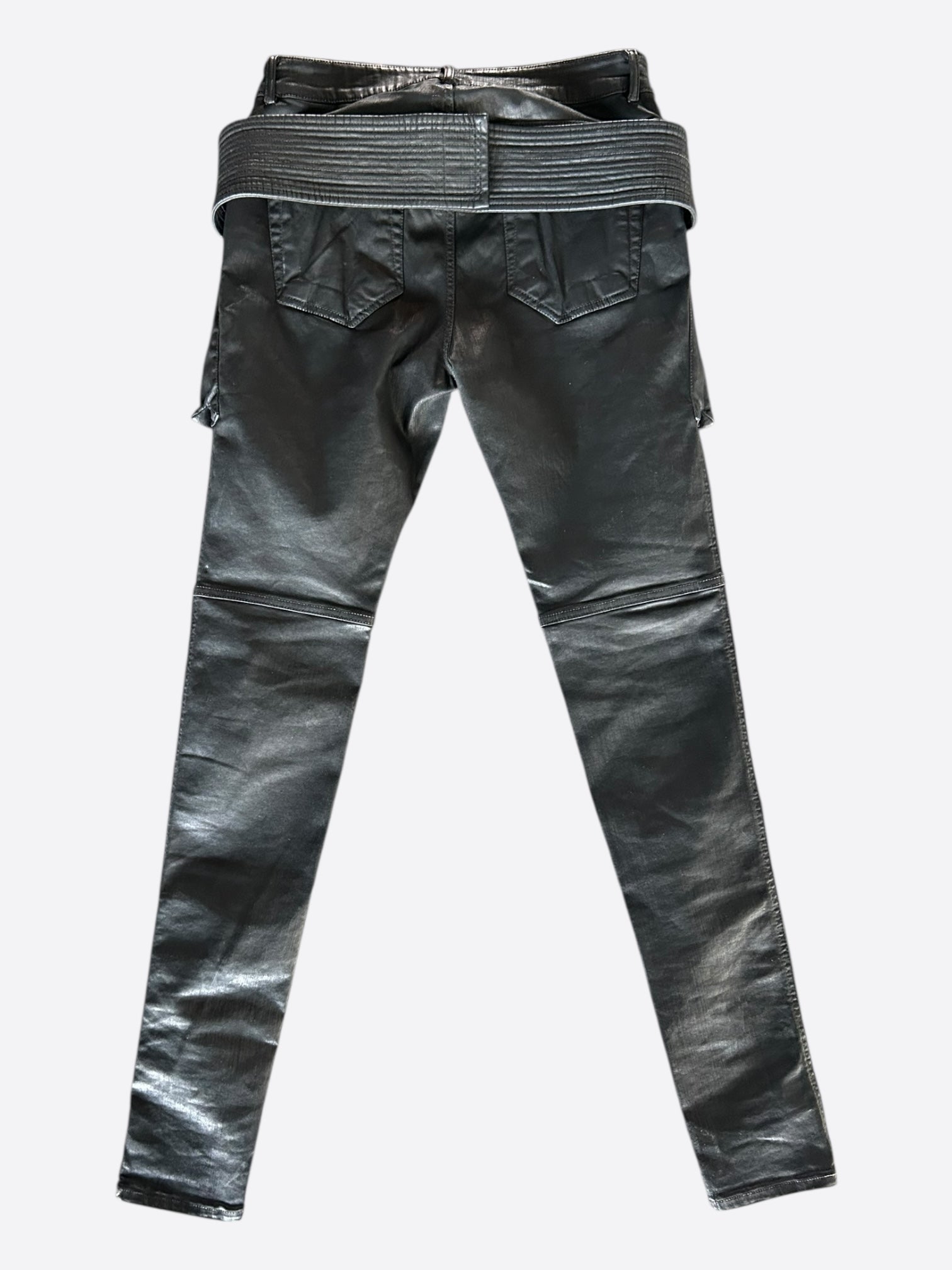 Rick Owens Black Waxed Easy Creatch Cut Jeans