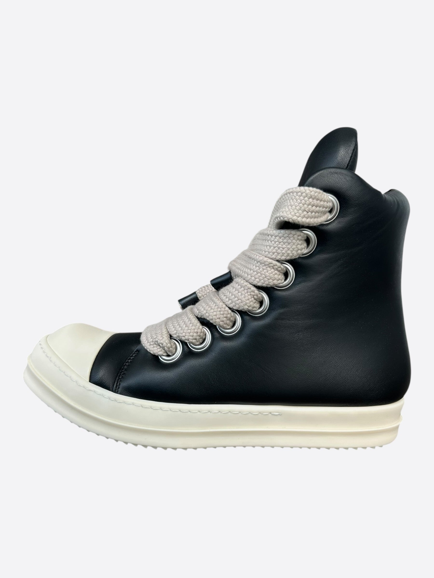 Rick Owens Black & White Leather Jumbo Lace High Top Puffer Sneakers