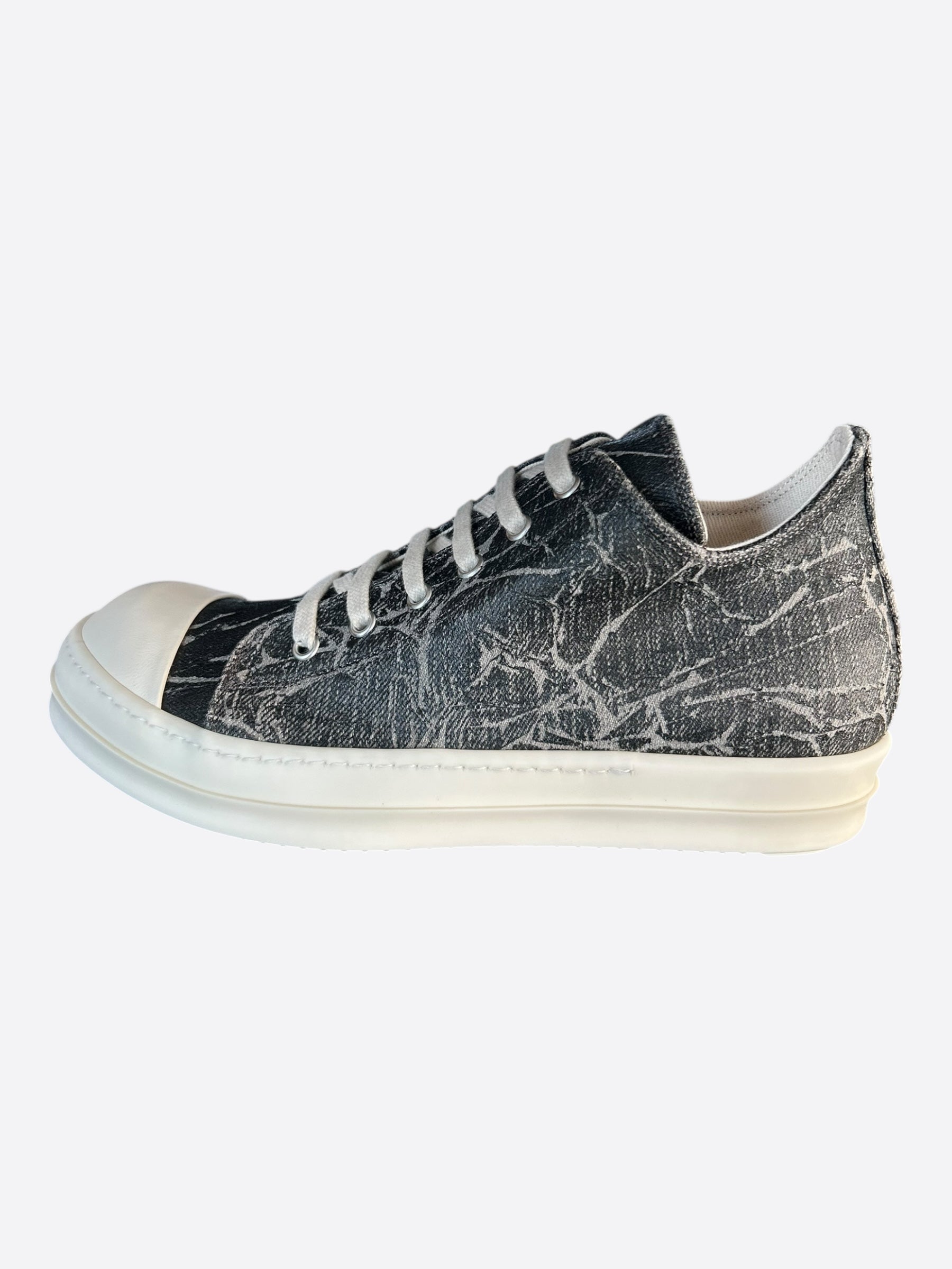 Rick Owens Black & White Washed Foil Low Top Sneakers