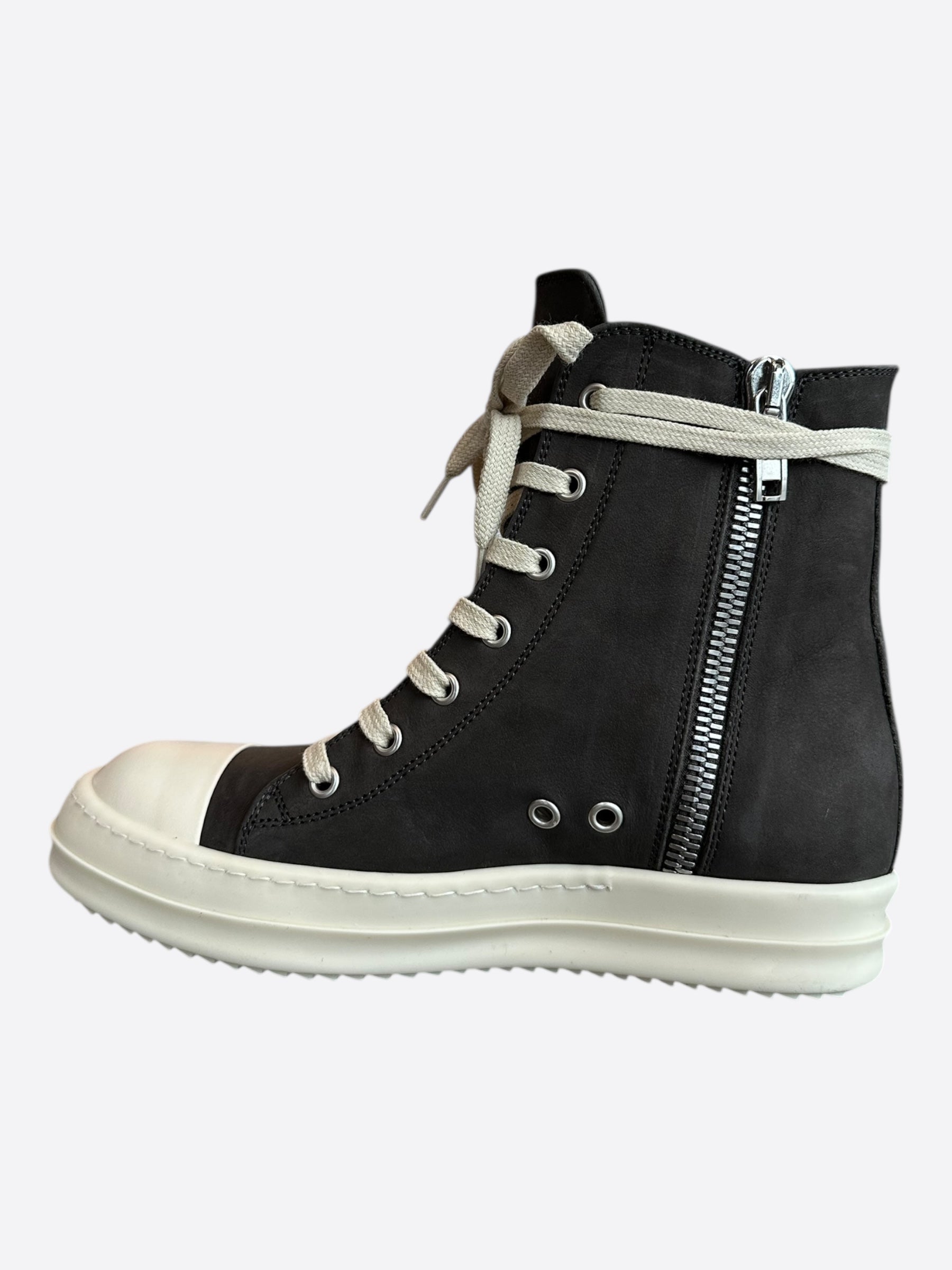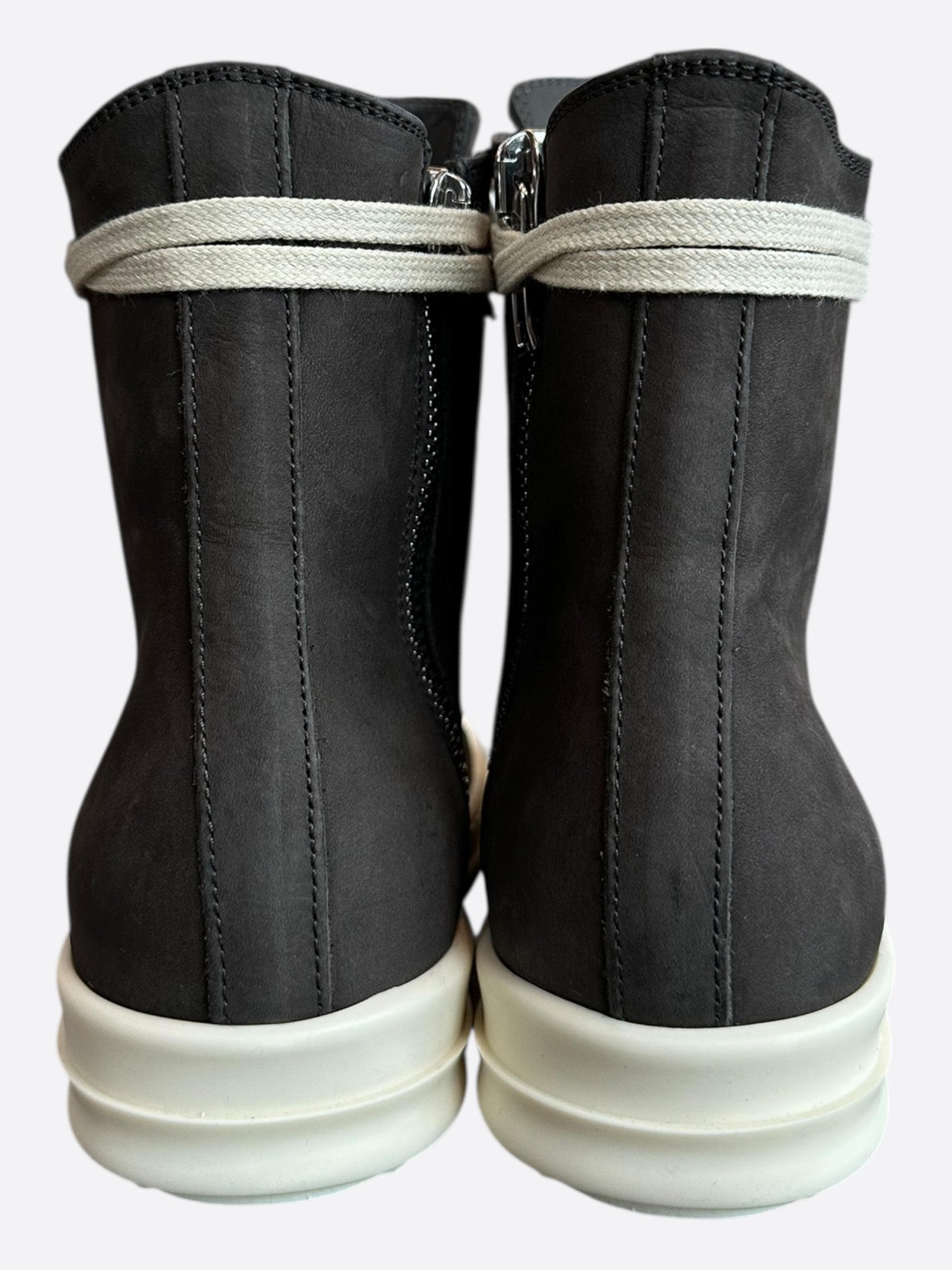 Rick Owens Dark Grey & White Leather Women's High Top Sneakers